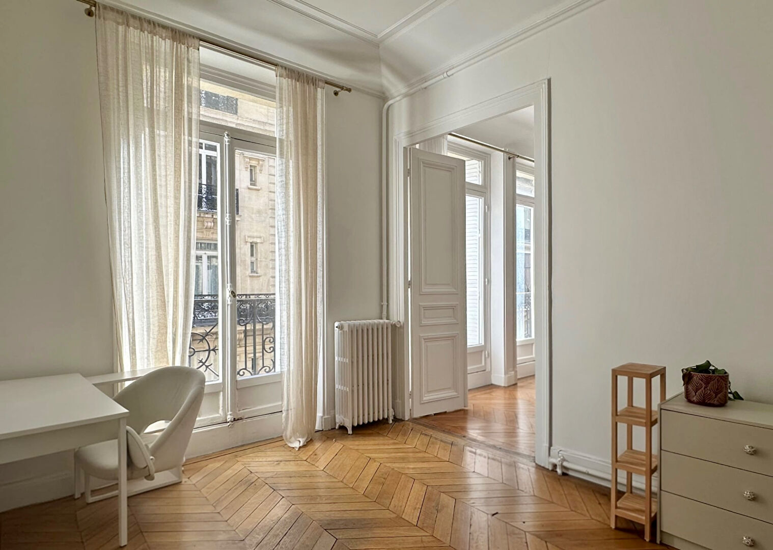 A deux pas de l'avenue Montaigne, au coeur du très recherché Triangle d'Or, découvrez ce magnifique 3 pièces de 73 m² situé au 2? étage avec ascenseur d'un immeuble haussmannien en pierre de taille, avec gardien et parties communes de standing. Entièrement rénové en 2023, en conservant le charme de l'ancien : parquet en point de Hongrie, cheminée en marbre, moulures. Il dispose d'une entrée, un double séjour baigné de lumière, ouvrant sur un large balcon filant exposé Sud-Ouest (possibilité de recréer une seconde chambre), une cuisine indépendante aménagée et équipée, une chambre spacieuse sur cour, au calme, un dressing, une salle d'eau avec douche à l'italienne, WC indépendants. Double vitrage, chauffage et eau chaude individuels au gaz, DPE E. Bail code civil uniquement. Honoraires : 15% du loyer annuel TTC.