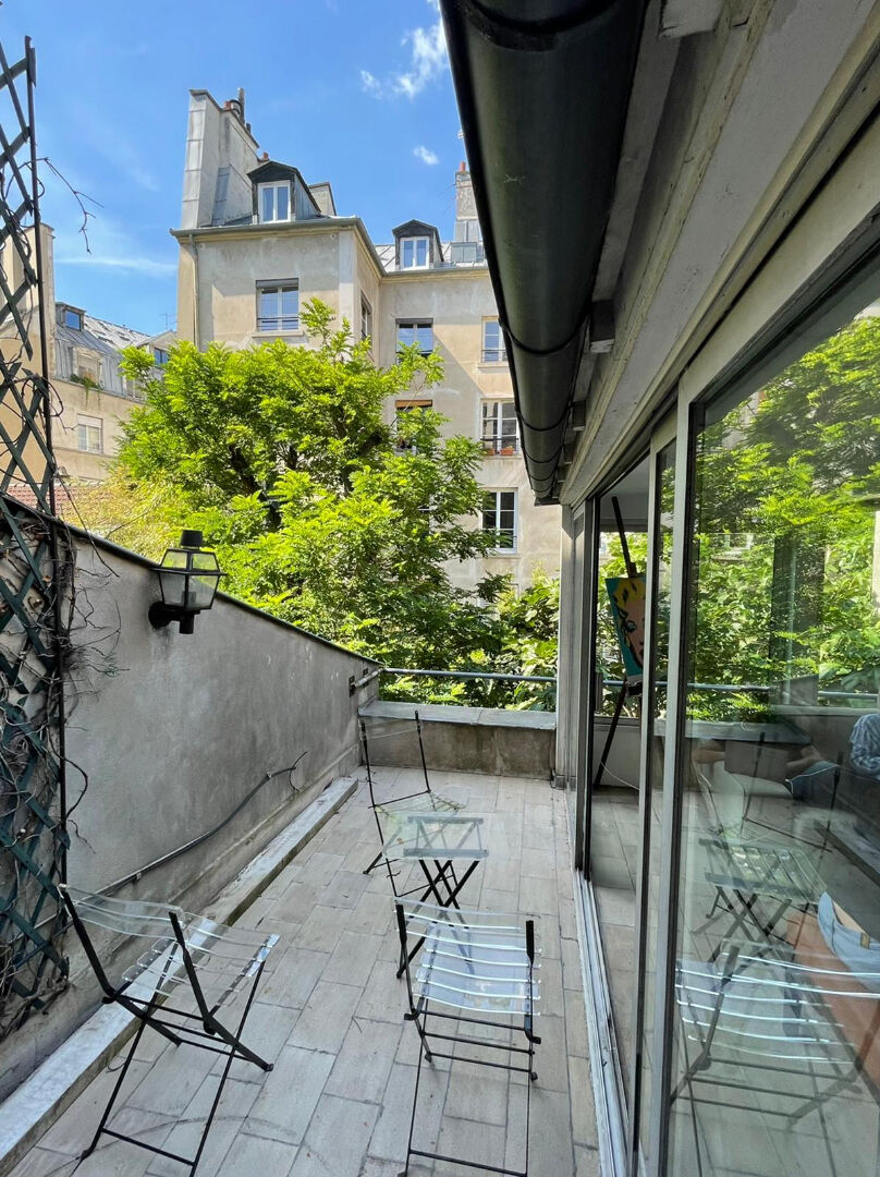 BAIL CODE CIVIL UNIQUEMENT Au coeur de Saint-Germain-des-Prés, dans les anciens Bains-Douches, Quod et Associés vous propose ce duplex meublé de 205 m² baigné de lumière. Renové et meublé avec goût, l'appartement occupe les 2? et 3? étages, accès privatif par ascenseur ou escalier. Le premier niveau propose deux salons élégants, un salon d'hiver, un balcon de 10 m², deux salles à manger, une cuisine indépendante entièrement équipée, ainsi qu'un espace nuit avec une chambre double, une chambre d'enfant, un dressing, une buanderie, une salle d'eau et des toilettes séparées. A l'étage, une chambre supplémentaire s'accompagne d'un salon d'hiver prolongé par une belle terrasse de 25 m². Une salle de bains avec WC complète ce niveau. Chauffage et eau chaude inviduels au gaz inclus dans les charges. Disponible mi-novembre. Honoraires bail code civil : 15% du loyer annuel
