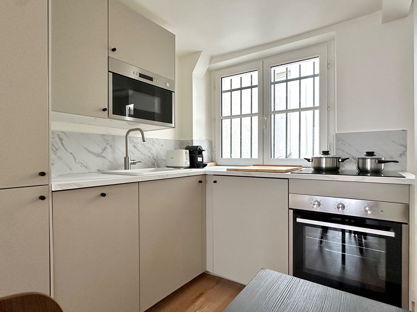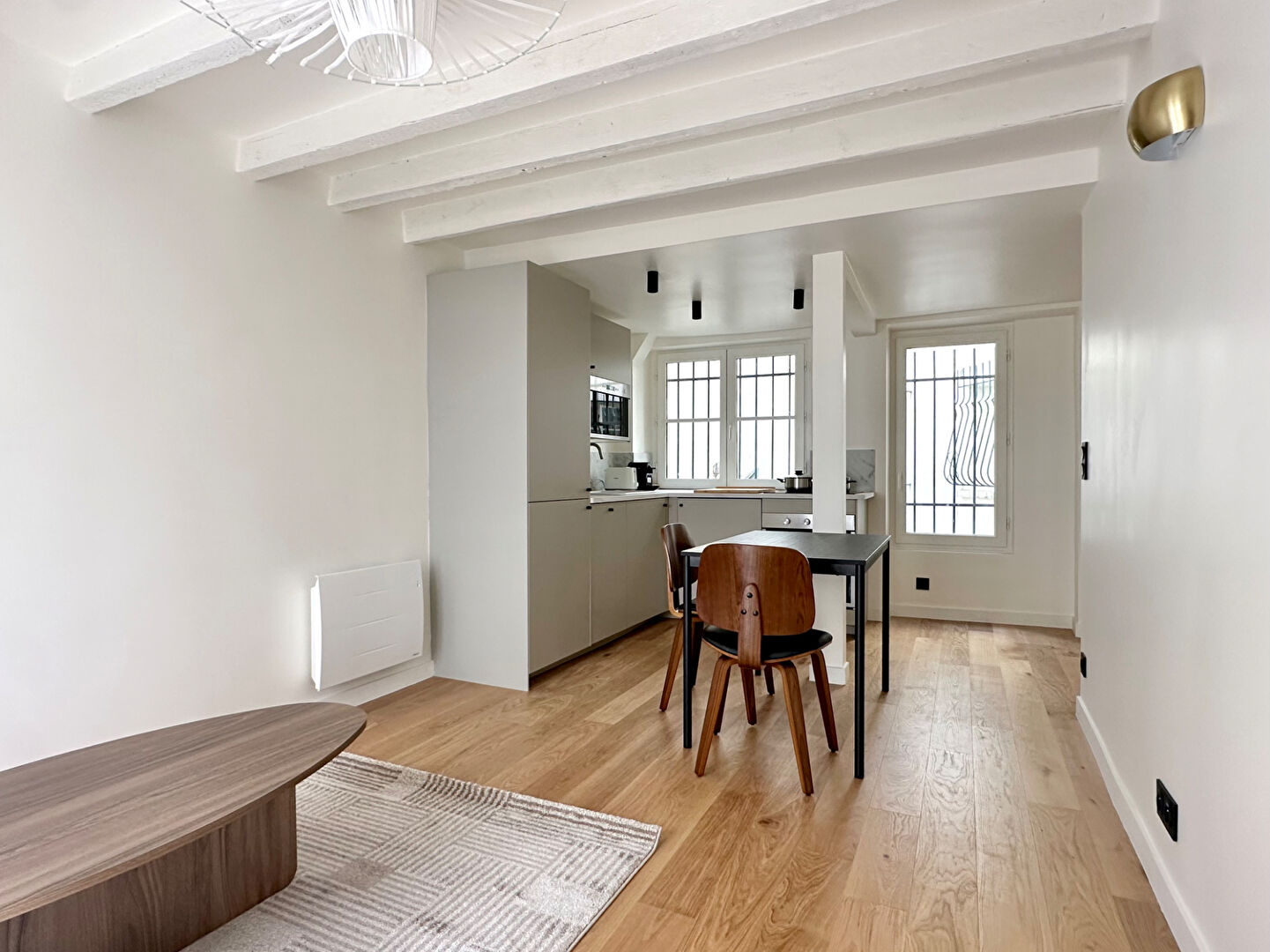 Rue de la Terrasse, au 1er étage sans ascenseur, ce charmant appartement 2 pièces meublé de 35m2, entièrement refait à neuf par architecte.