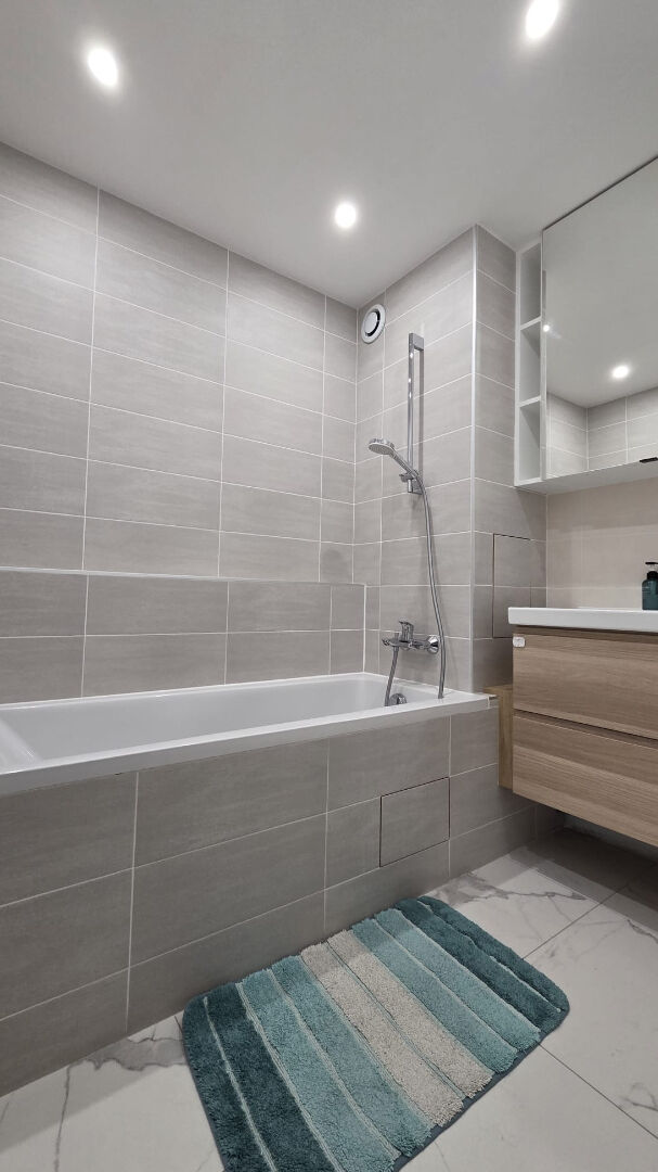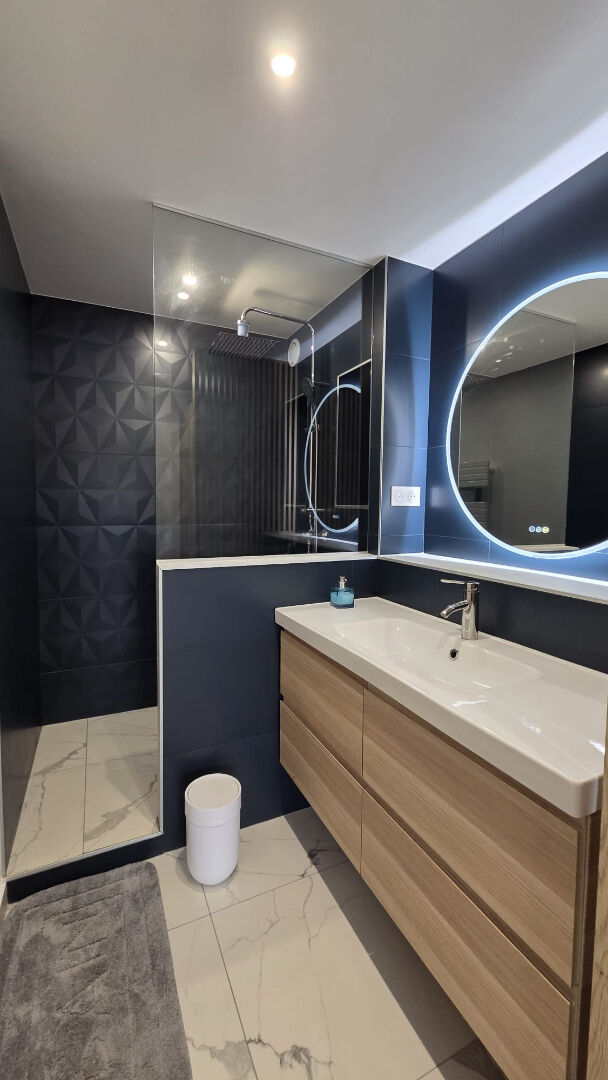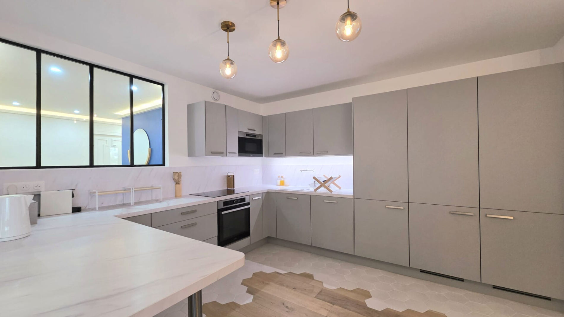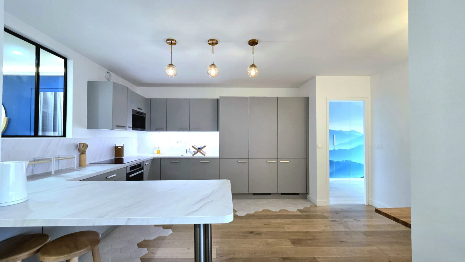 comprend une entrée, une pièce de vie de 58 m² avec cuisine ouverte aménagée et équipée, une suite parentale avec sa salle d'eau attenante, deux autres chambres, une salle de bain avec baignoire. Buanderie. Deux wc dont un indépendant. Nombreux rangements. DPE D. Chauffage électrique individuel et eau chaude collective. Mobilier flexible.