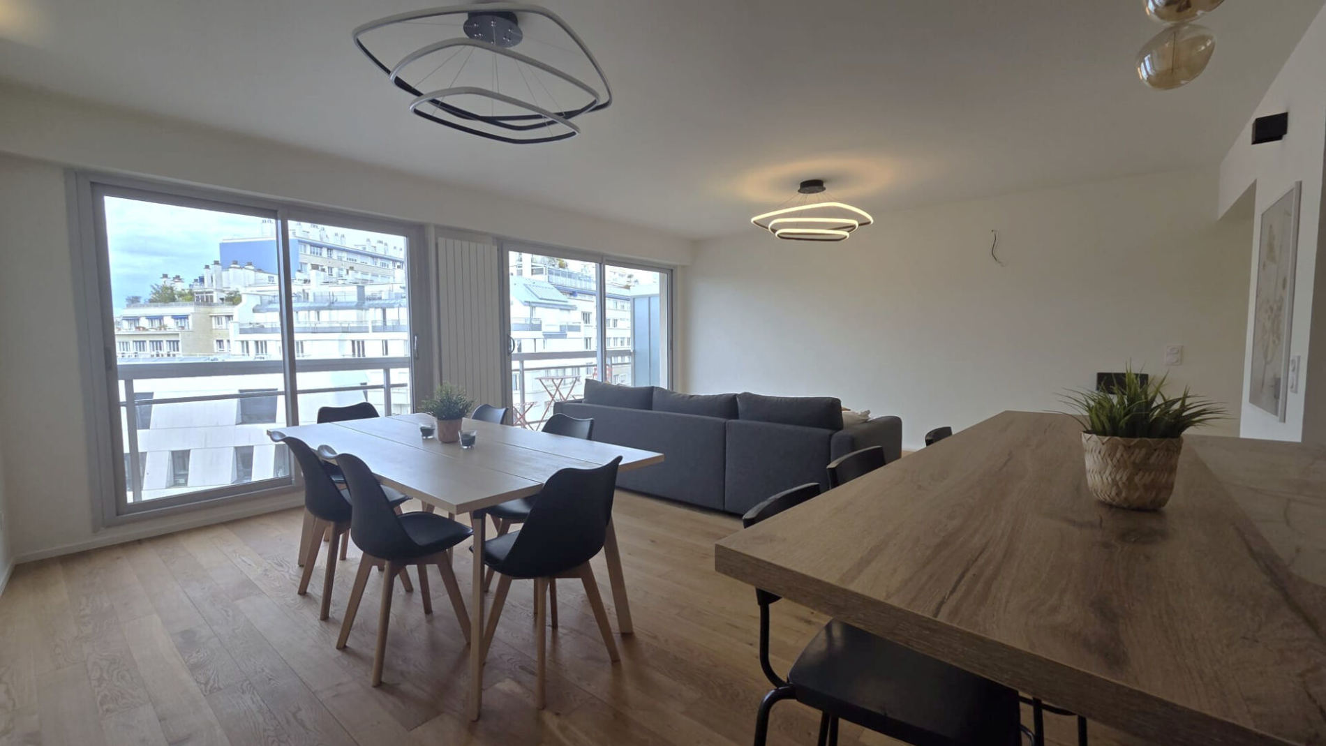 PARIS 15 COMMERCE _A deux pas de la rue du Commerce et du métro (ligne 8), dans une résidence de 1935 sécurisée avec gardien, au 7ème étage par ascenseur, un appartement traversant de 85 m² loué meublé. Ce bien refait à neuf vous séduira par sa luminosité, ses volumes et son caractère fonctionnel.