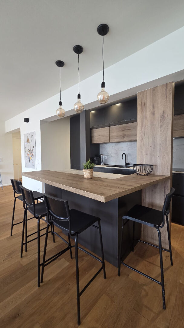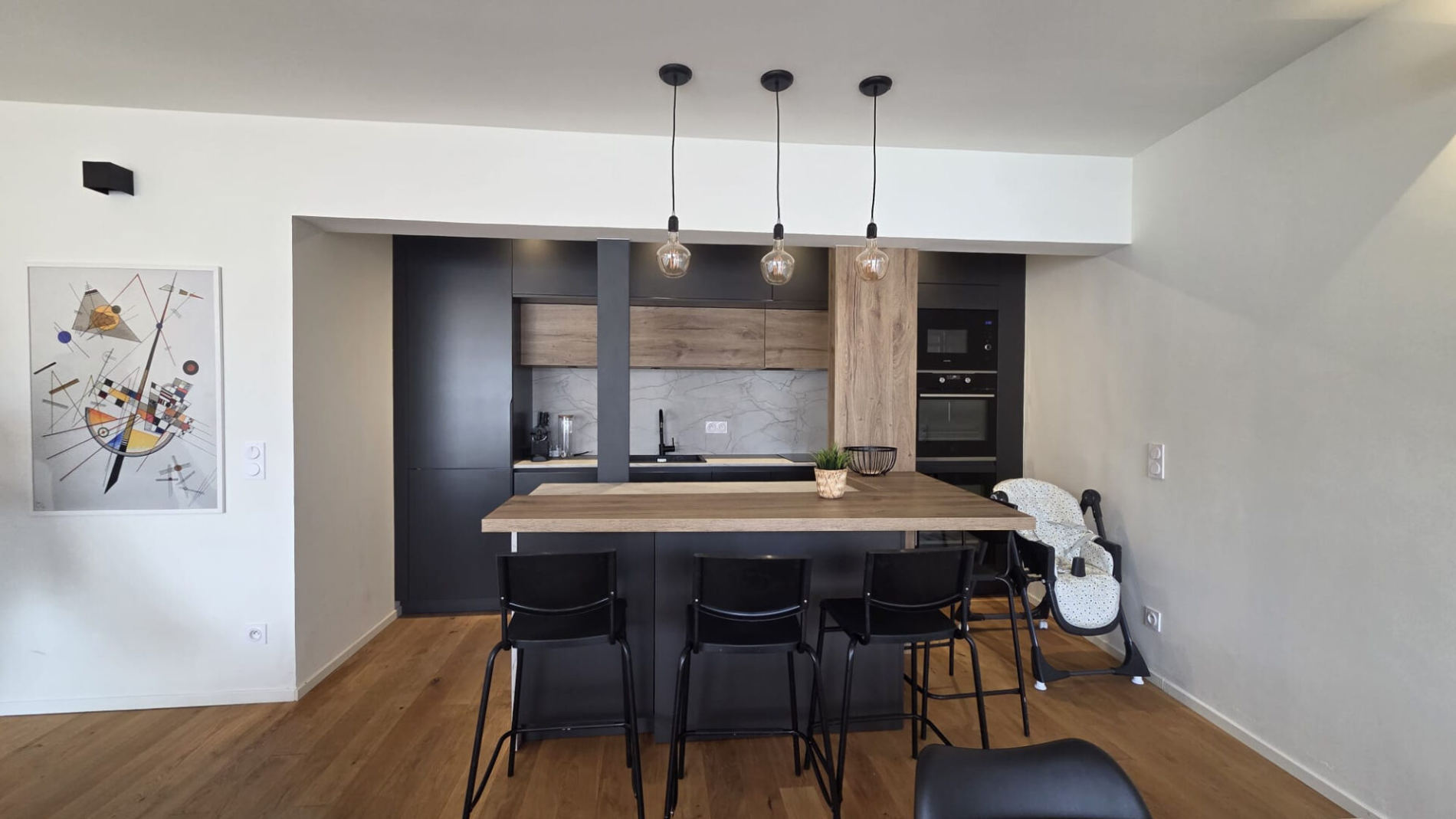 Il propose une entrée, une grande pièce de vie donnant accès à balcon avec vue dégagée, une cuisine ouverte aménagée et équipée munie d'un îlot central, deux chambres dont une suite parentale avec salle de douche attenante et dressing, une salle d'eau et deux wc. DPE D.