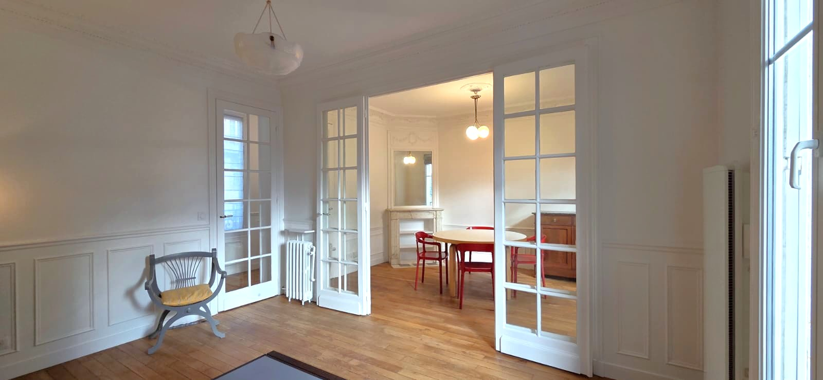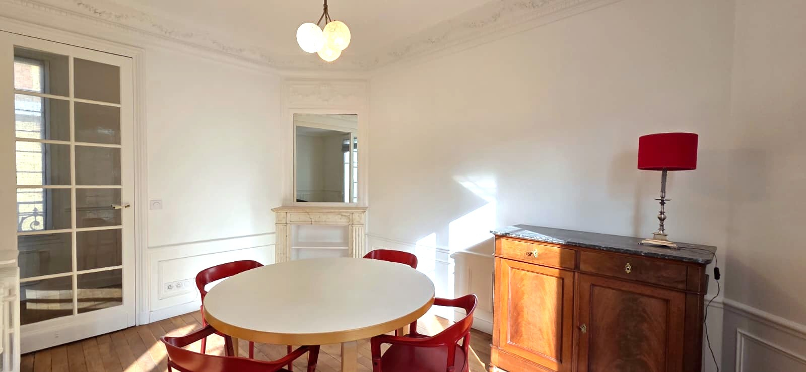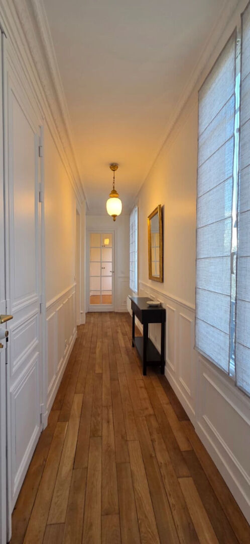 PARIS 7_ A 5 min du métro St François Xavier (ligne 13), et à moins de 10 min du Bon Marché, rue Oudinot, au sein d'un immeuble haussmannien sécurisé et avec gardien, au cinquième étage par ascenseur, un appartement deux pièces traversant de 66,25 m² loué meublé sur cour dégagée. Entièrement rénové, ce bien vous séduira par son calme et ses belles prestations. Il propose un couloir desservant un grand séjour avec espace salle à manger, une cuisine semi-ouverte aménagée et équipée haut de gamme, une chambre avec dressing, une salle de douche, des wc séparés. Mobilier flexible. Chauffage et eau chaude collectifs. DPE E.